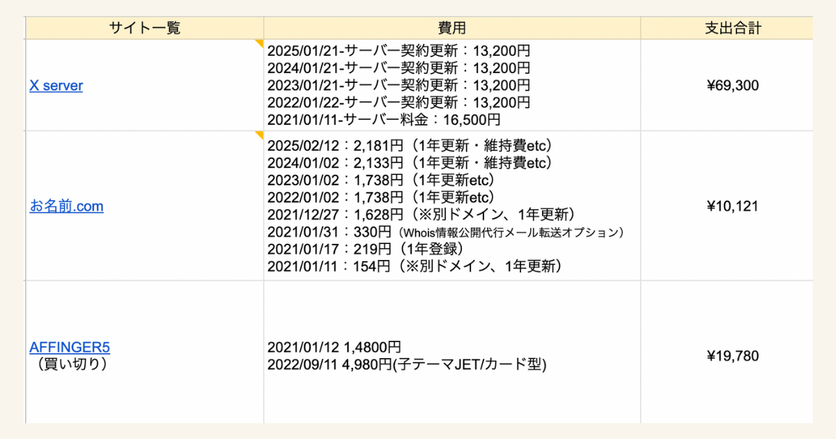 これまでブログにかけた費用